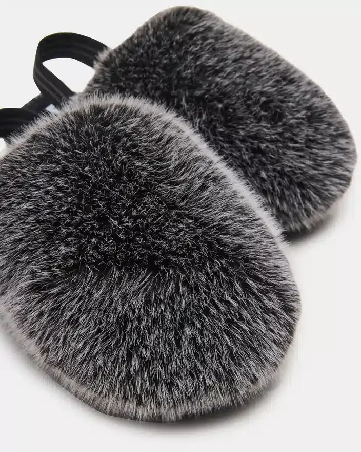The Kids’ Poof is a Comfy Flat Featuring Soft Faux Fur That Ensures Warmth and Comfort for Your Child. Its Durable Construction Supports Everyday Wear, Making It Ideal for Both Indoor Lounging and Casual Outings. The Stylish Grey Shade Complements Various Outfits While Providing a Snug Fit Designed for Kids.