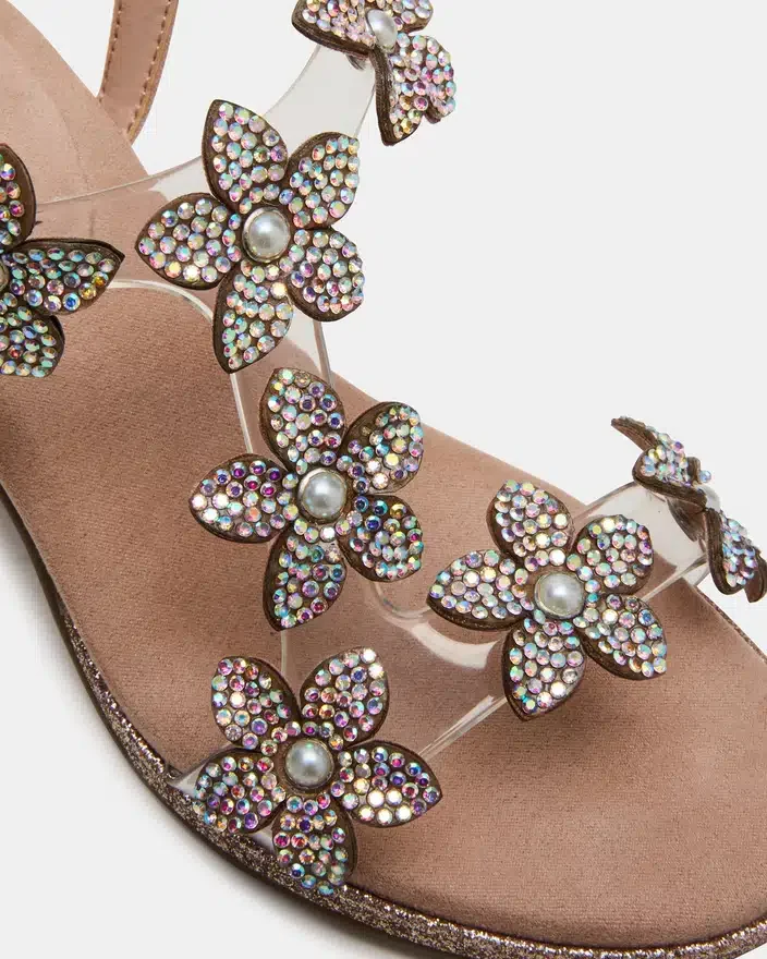 Expertly Designed for Comfort and Style, the Kids’ Savvy Features a Strappy Heel and Block Heel for Stability and Support. The Rhinestone Flower Embellishments Add a Touch of Sparkle, Making It the Perfect Choice for Your Little One’s Special Occasion.