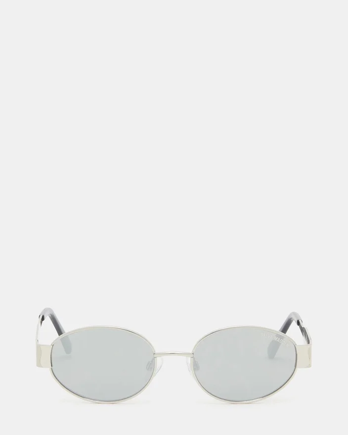 Expertly Crafted with a Shiny Silver Frame, These Mystie Sunglasses Make a Stylish and Versatile Accessory. The Silver Lenses Provide 100% Uv Protection While Enhancing Your Vision. Upgrade Your Look with These Quality Sunglasses.