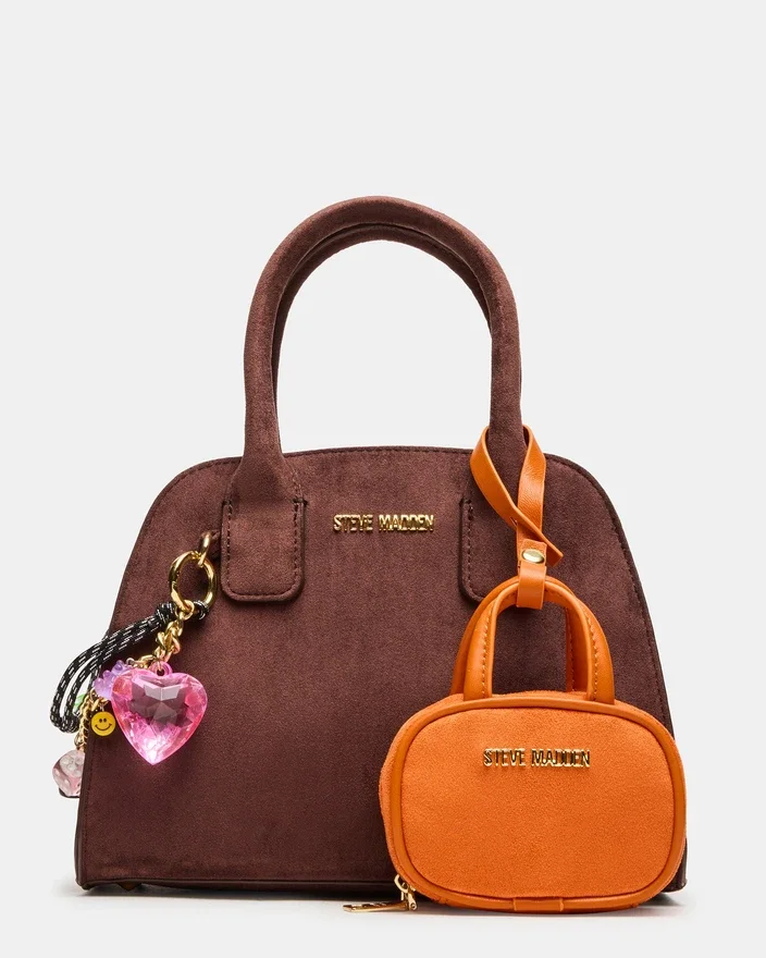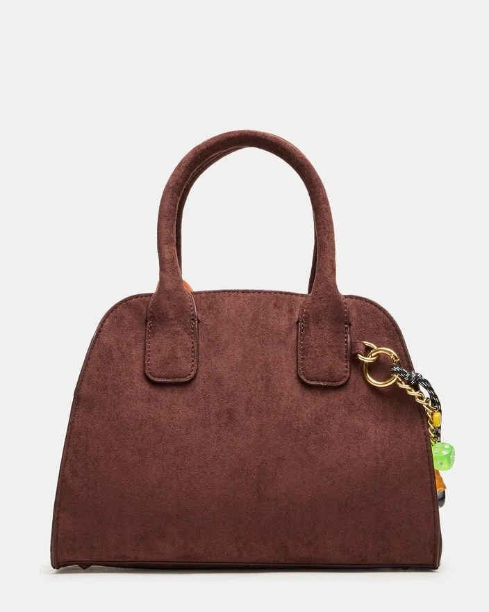 The Moore Bag Chocolate Combines Sophisticated Design with Practical Versatility. This Top Handle Bag Features an Attachable Crossbody Strap, Allowing You to Transition Seamlessly Between Hand-Carry and Shoulder Wear. Customize Your Look with Included Bag Charms That Add Personality, and Utilize the Attachable Mini Pouch for Organizing Smaller Essentials. Expertly Crafted for the Modern Professional Who Values Both Style and Functionality.