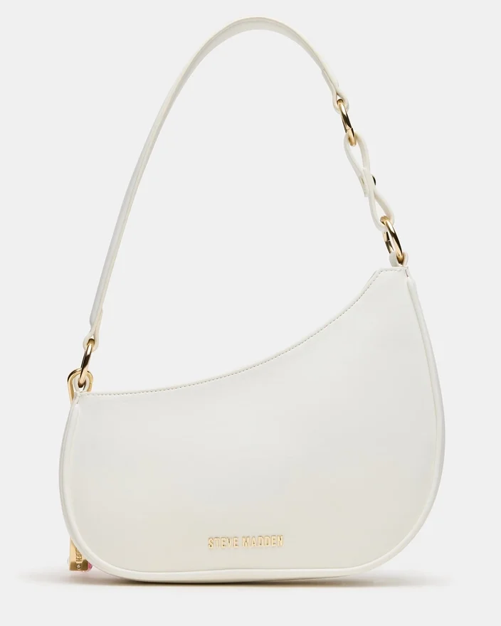 This Musee Bag White is an Asymmetrical Shoulder Bag That Features a Top-Zipper Closure, Making It Both Secure and Stylish. The Flower Bead Bag Charm Adds a Touch of Whimsy. With Its Unique Design and Functional Features, This Bag is an Ideal Accessory for Any Fashion-Forward Individual.
