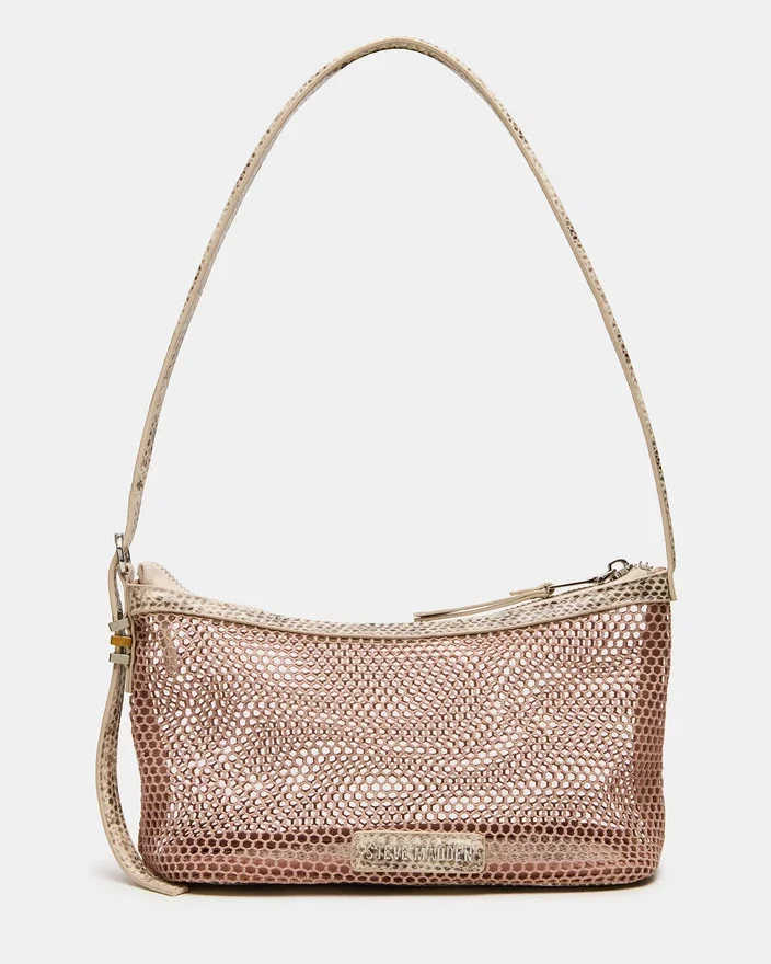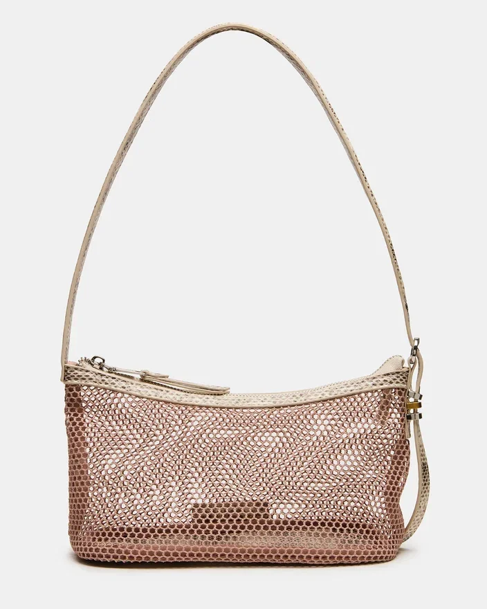The Vixen Bag Blush Combines Contemporary Design with Practical Functionality. This Structured Silhouette Features a Mesh Shoulder Strap Paired with Embossed Trim Detailing That Elevates the Overall Aesthetic. The Reinforced Bottom Provides Lasting Shape and Stability, While the Top-Zipper Closure Ensures Secure Storage for Your Essentials. Perfect for Transitioning from Day to Evening, This Piece Delivers Sophisticated Style Without Compromising on Everyday Wearability.