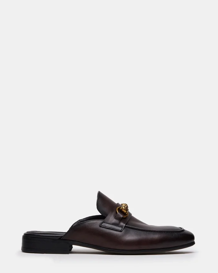 The Jovian Brown Leather Slip-On Dress Shoe Combines Understated Elegance with Practical Design. This Mule-Style Silhouette Features a Distinctive Horsebit Buckle Accent That Elevates Any Formal or Professional Look. The Construction Ensures Durability and a Polished Appearance, While the Slip-On Fit Provides All-Day Comfort Without Compromising on Style.