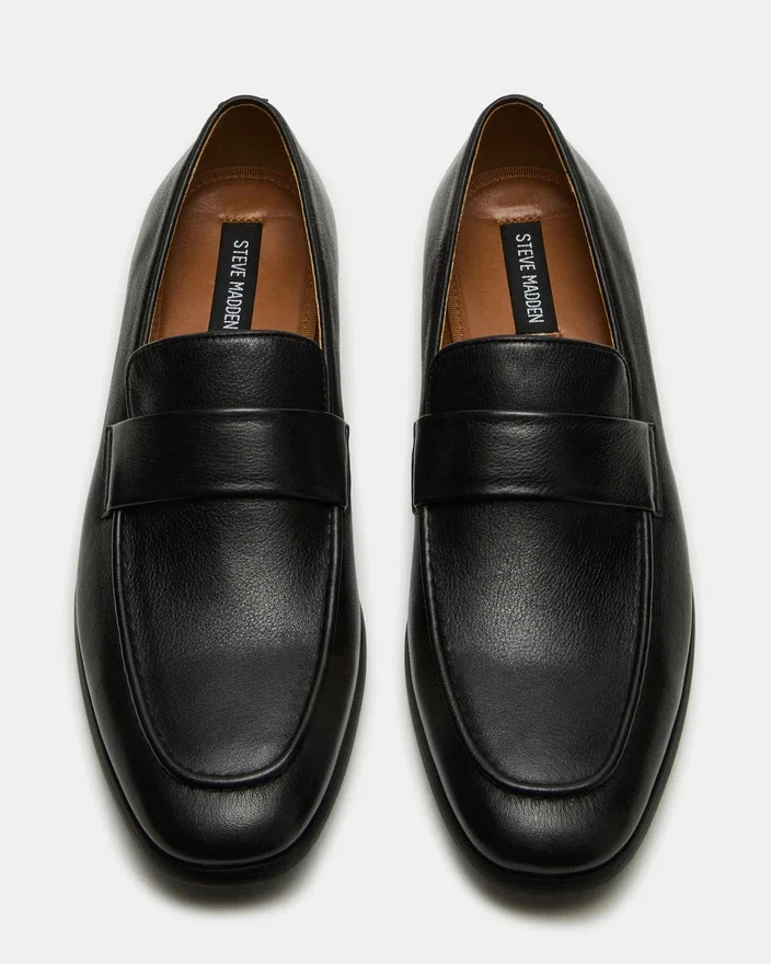 Expertly Crafted with Smooth Black Leather, the Biscuit Slip-On Dress Loafer Exudes Elegance and Sophistication. Its Slip-On Design Provides Convenience and Ease, While the Sleek Silhouette Adds a Touch of Refinement. Elevate Your Work Attire or Formal Look with This Timeless and Comfortable Shoe.