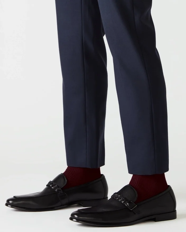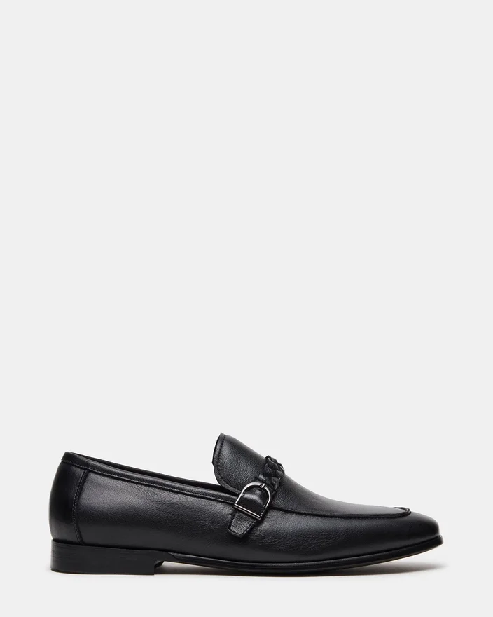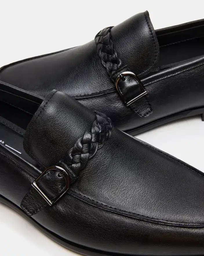 The Chaplin Black Leather Combines Timeless Loafer Styling with a Distinctive Woven Strap Detail That Elevates the Classic Silhouette. This Slip-On Design Delivers Effortless Sophistication, Crafted for Versatile Everyday Wear and Polished Occasions Alike. A Refined Choice for Those Who Appreciate Understated Elegance with Thoughtful Design Elements.