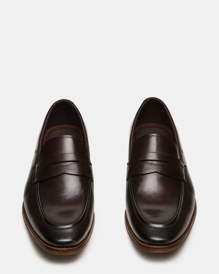 The Lightning Brown Leather Slip-On Loafer Combines Understated Elegance with Practical Design, Featuring a Rounded Toe That Flatters the Foot While Maintaining a Polished Appearance. This Versatile Style Transitions Seamlessly from Professional Settings to Casual Occasions, Making It a Perfect Addition to Any Wardrobe.