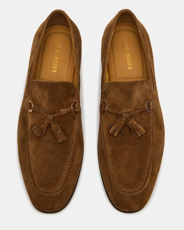 Experience Comfort and Style with the Logan Cognac Suede Slip-On Loafer. The Tassel Adds a Touch of Elegance to This Classic Shoe, Making It Perfect for Any Occasion. Step into Luxury and Effortless Sophistication with This Must-Have Addition to Your Wardrobe.
