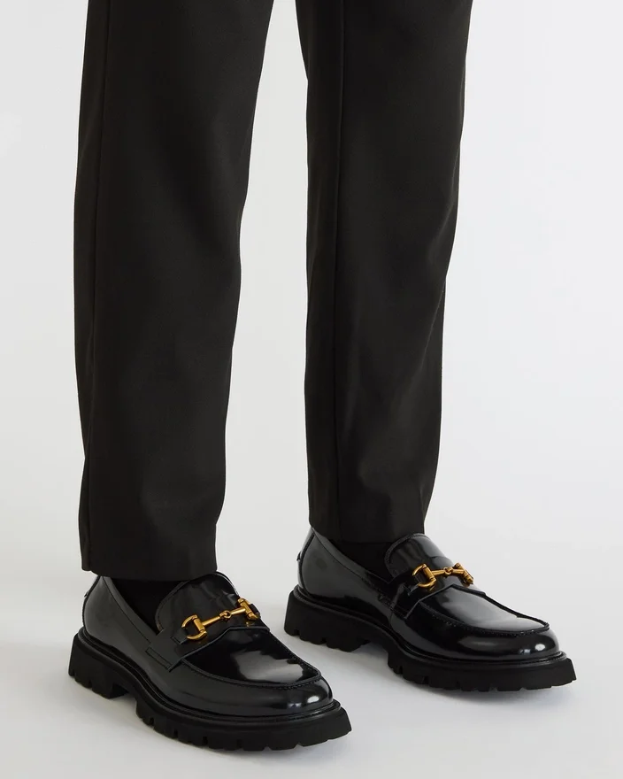The Naxos Black Leather Slip-On Loafer Combines Timeless Style with Durable Design, Featuring a Signature Horsebit Hardware Decal for a Refined Touch. Its Lug Sole Offers Enhanced Traction and Stability, Making It a Versatile Choice for Both Professional and Casual Settings. Crafted from Premium Materials, This Loafer Ensures Lasting Comfort and Sophistication.