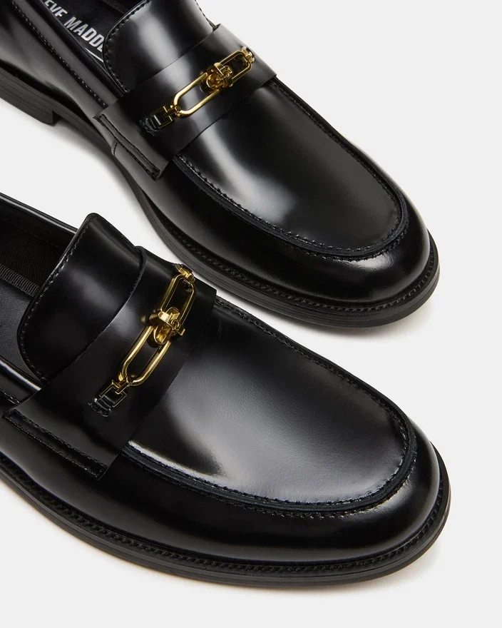 The Nevinn Black is a Sophisticated Slip-On Dress Loafer That Elevates Your Professional Wardrobe with Refined Styling. Designed for Effortless Elegance, This Loafer Features a Streamlined Silhouette Perfect for Boardroom Meetings or Upscale Occasions. The Standout Hardware Accent Adds a Contemporary Edge to the Classic Loafer Design, Distinguishing It from Conventional Dress Shoes.