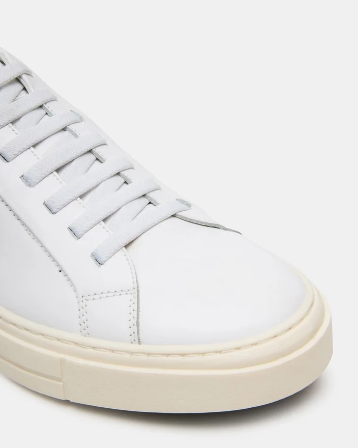 Crafted from Sleek White Leather, the Zoii Low-Top Lace-Up Sneaker Combines Modern Style with Comfort. Featuring a Secure Lace-Up Design, This Shoe is Perfect for Everyday Wear and Will Elevate Any Outfit. Experience the Perfect Blend of Fashion and Functionality with This Sneaker.