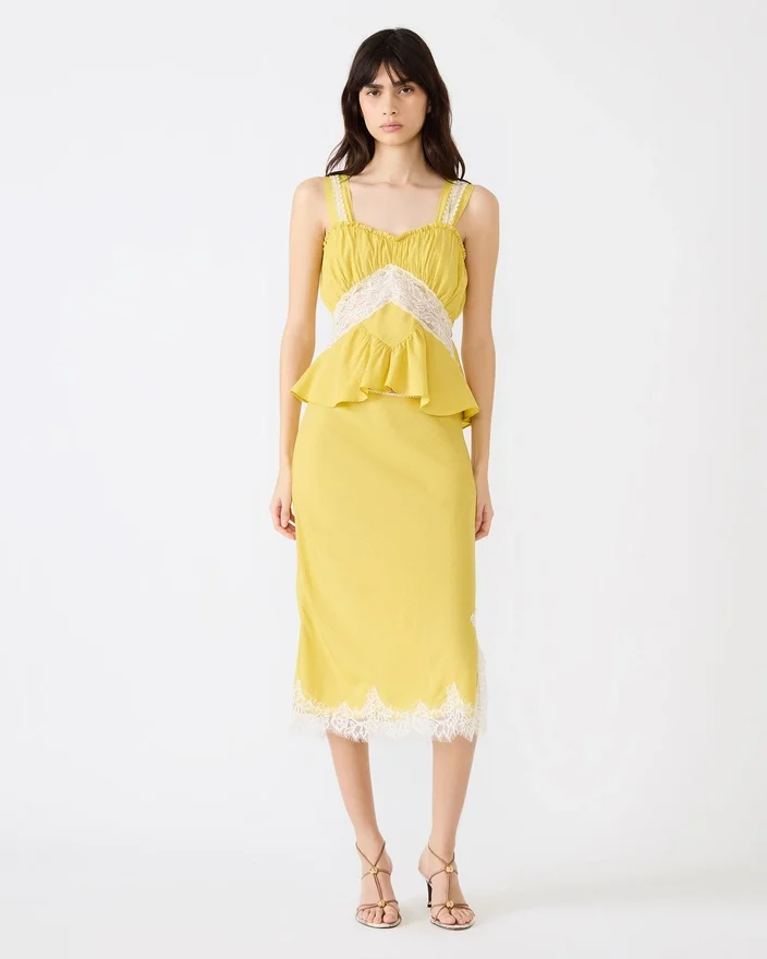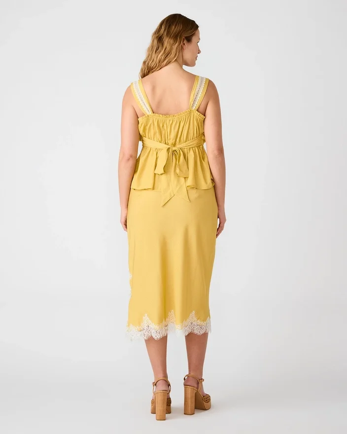 The Cinthia Skirt Golden Lime Delivers Effortless Sophistication with Its Midi Silhouette and Delicate Lace Trim Detailing. This Versatile Piece Transitions Seamlessly from Day to Evening, Offering a Refined Aesthetic That Elevates Any Wardrobe. The Skirt Provides a Fresh, Contemporary Edge While Maintaining Timeless Appeal. Perfect for Those Seeking Polished Style with Subtle Feminine Touches, This Skirt Pairs Beautifully with Both Fitted Tops and Relaxed Blouses for Dynamic Styling Options.