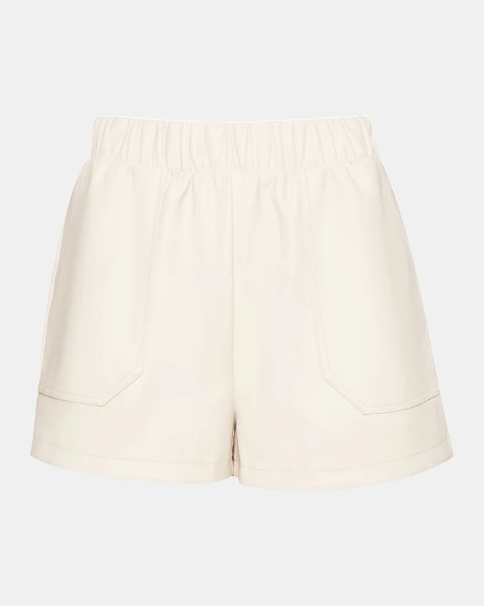 Crafted for Comfort and Style, the Faux the Record Short Features a Wide Elastic Waistband That is Both Chic and Versatile. The Faux Leather Material Adds a Touch of Ruggedness, While the Pull-On Design Allows for Easy Wear.