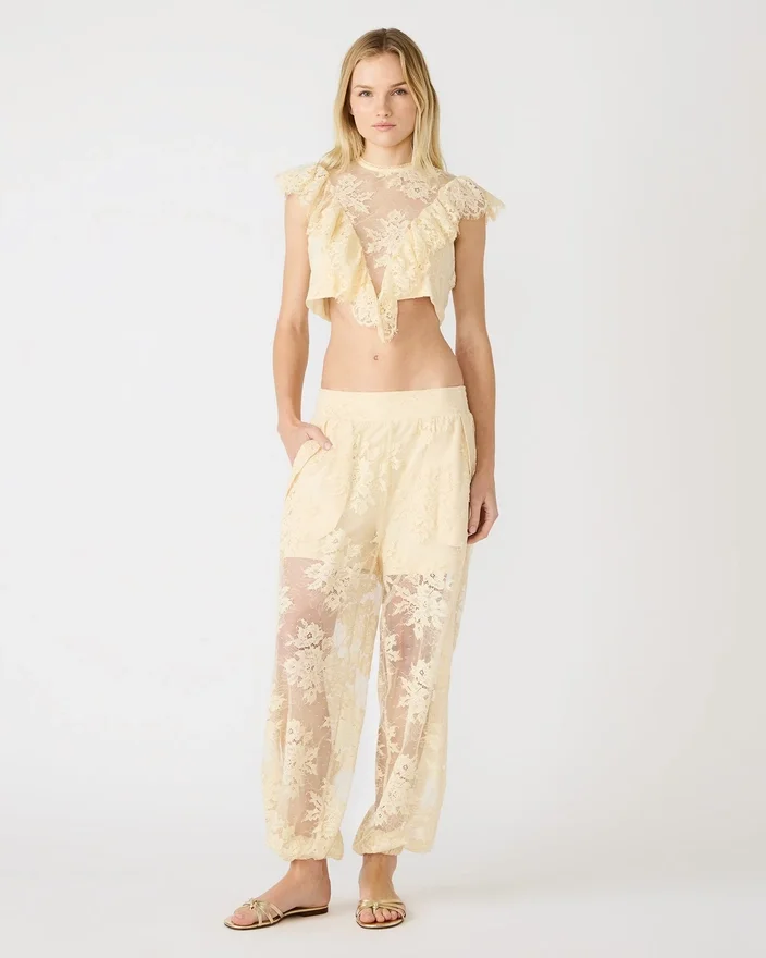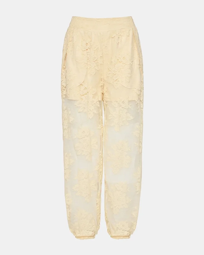 The Faya Pant Tropic Sands Brings Effortless Style to Your Seasonal Rotation. This Pull-On Design Combines Breathable Mesh with Delicate Lace Detailing for a Lightweight, Sophisticated Look. A Smocked Waist Ensures a Secure, Customizable Fit, While Two Functional Front Pockets Add Practical Appeal. Ideal for Warm-Weather Adventures and Relaxed Everyday Wear.