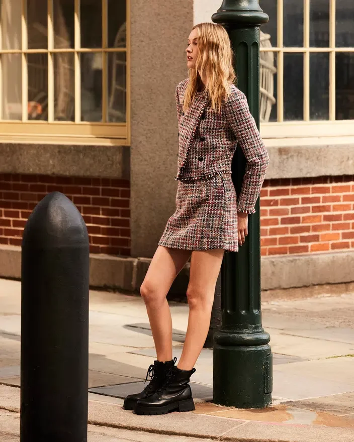 Expertly Crafted and Designed, the Mattea Skirt is a Multi-Colored Speckled Mini Skirt That is Sure to Elevate Any Outfit. Featuring a Convenient Side Zip Closure and is Fully Lined for Added Comfort, This Tweed Skirt is Perfect for Any Occasion. Enjoy the Benefits of a Versatile and Stylish Addition to Your Wardrobe.