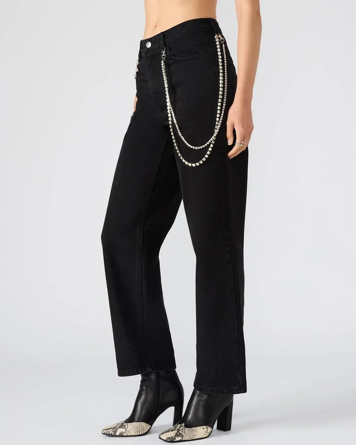 These Swift Wide-Leg Denim Jeans Combine Style and Practicality with Functional Front and Back Pockets for Convenient Storage. The Attachable Chain Adds a Versatile, Edgy Detail, Allowing You to Customize Your Look. Crafted for Comfort and a Relaxed Fit, This Jean is an Expert Choice for a Modern, Fashion-Forward Wardrobe.