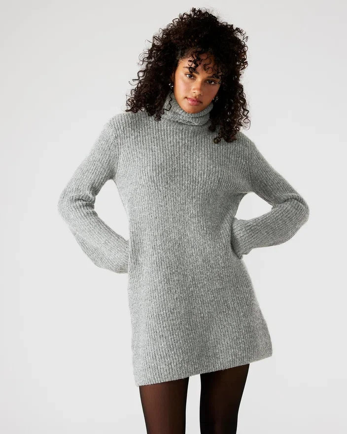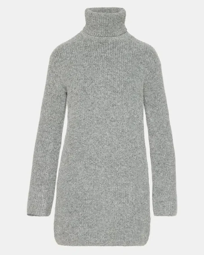 The Abbie Sweater Dress is Expertly Crafted with a Turtleneck and Flare Sleeves and Offers a Relaxed Yet Stylish Fit. The Soft Brushed Material Provides Warmth and Comfort, Making It the Perfect Mini Dress for Cooler Weather. Elevate Your Wardrobe with This Versatile and Chic Pullover Dress.