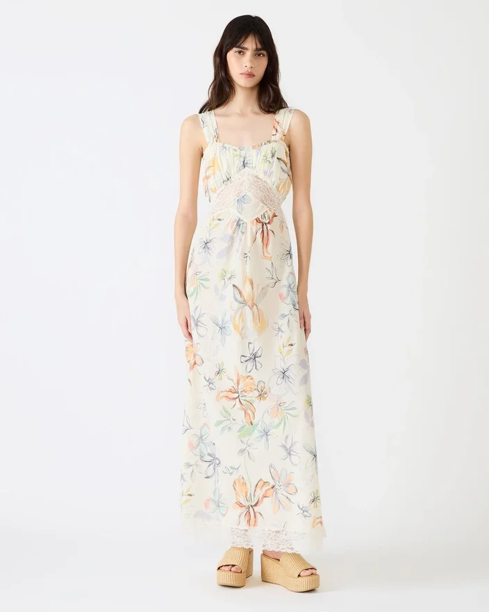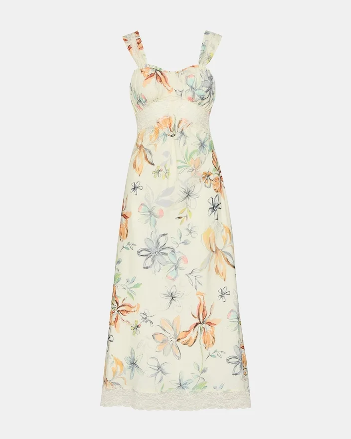 Embrace Effortless Elegance with the Alexus Dress Vintage Ivory. This Maxi Sleeveless Silhouette Features a Gracefully Flowing Design That Moves with You, Complemented by Delicate Lace Trim Detailing. The Romantic Floral Print Adds Timeless Sophistication, While an Ornamental Bow Decal Adorns the Back for an Unexpected Finishing Touch. Perfect for Garden Parties, Weddings, or Any Occasion Calling for Refined, Understated Style.