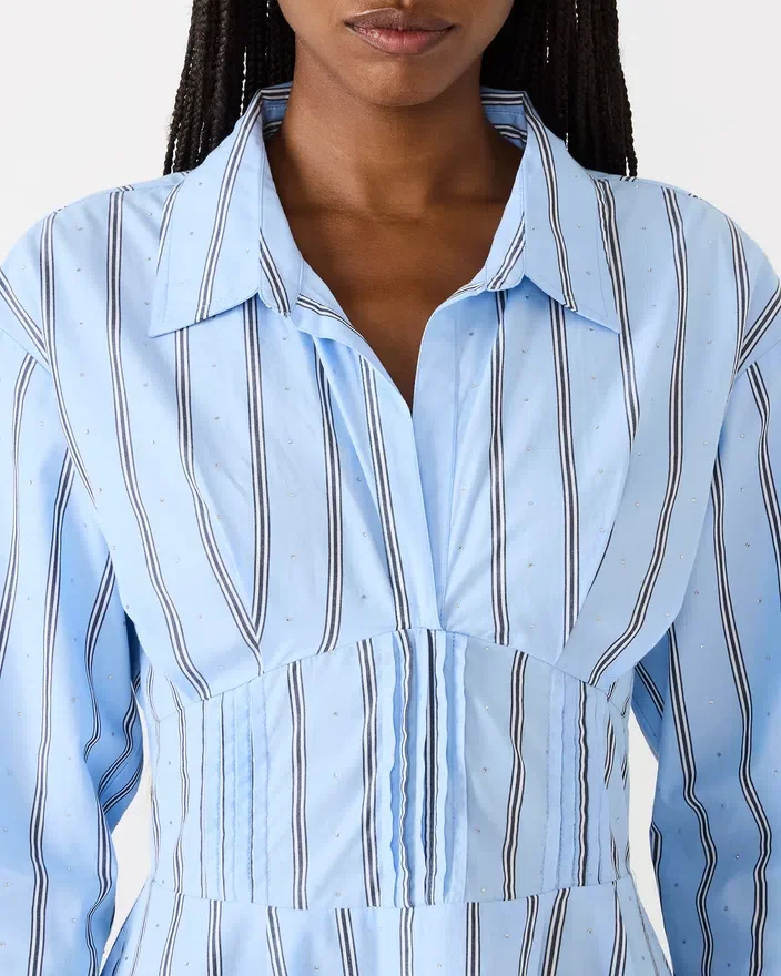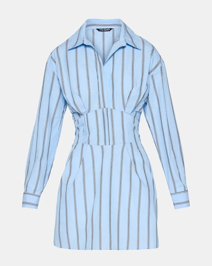 The Ariany Dress Estate Blue Combines Timeless Sophistication with Everyday Practicality. This Long-Sleeved Design Features a Crisp Collared Neckline That Elevates Any Occasion, While a Cinched Waist Creates a Flattering Silhouette That Defines Your Figure. Functional Front Pockets Add Utility Without Compromising Style, Making This Piece Equally Suited for the Office or Weekend Outings. The Dress Offers Versatility That Pairs Effortlessly with Your Existing Wardrobe, Delivering a Polished Look That Transcends Seasons.