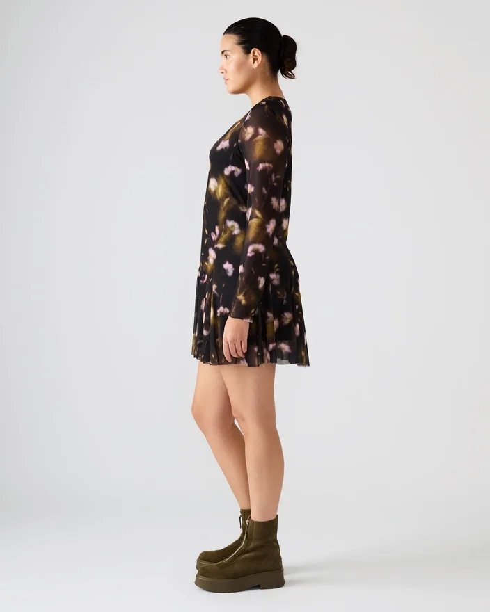 Elevate Your Wardrobe with the Bliss Dress Black Ditsy Floral, Featuring a Flattering Mini Length and a Flowy Silhouette That Moves Effortlessly. This Dress Showcases Delicate Sheer Mesh Long Sleeves for a Subtle, Modern Edge, While the Intricate Black Ditsy Floral Print Adds Timeless, Feminine Charm. Perfect for Day-To-Night Wear, It Combines Comfort and Style with Expert Craftsmanship.