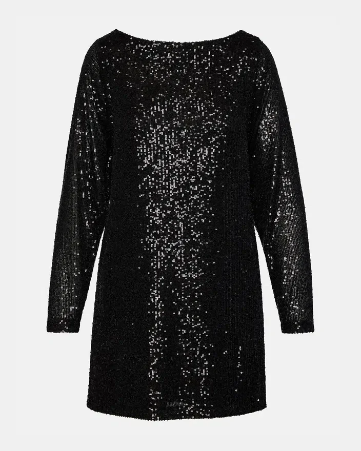 Enhance Your Wardrobe with the Ginger Dress. This Elegant Dress Features Long Sleeves and a Sparkling Sequin Design, Perfect for a Night out. With Its Mini Length, It Will Elongate Your Legs and Add a Touch of Glamour to Any Occasion. Dress to Impress in This Eye-Catching Dress!