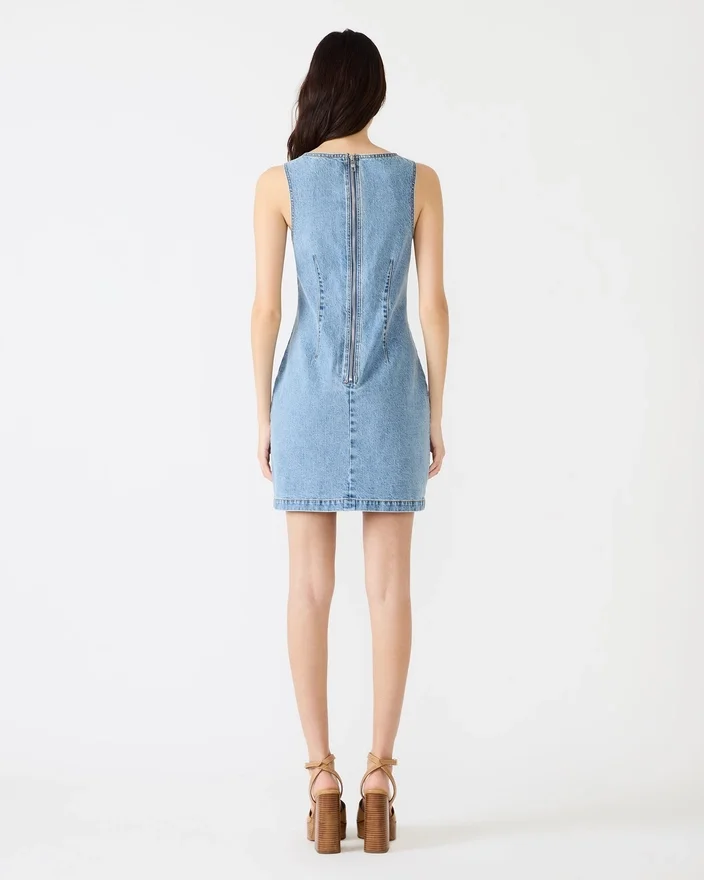 The Noelle Dress Forever Blue is a Contemporary Denim Mini with a Distinctive Back-Zipper Closure That Adds Modern Edge to a Timeless Silhouette. Crafted from Quality Denim, This Piece Transitions Effortlessly from Day to Night—Pair It with Sneakers for Casual Wear or Elevate with Heels and Accessories for Evening Occasions. The Strategic Back-Zip Detail Creates Visual Interest While Offering Practical Functionality. A Versatile Wardrobe Essential That Balances Classic Denim Appeal with Contemporary Design Elements.