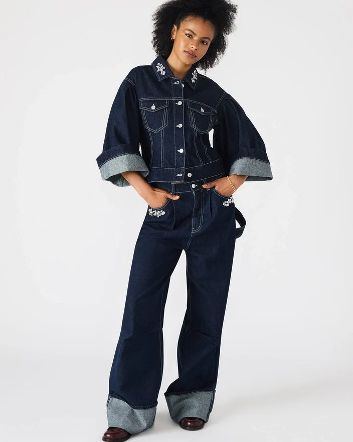 This Dorothy Jacket Bijou Blue Denim Button-Up Features a Refined Embellished Collar That Adds a Sophisticated Touch to Its Classic Design. Crafted for Versatility, It Offers a Polished Yet Casual Look, Making It Ideal for Layering in Transitional Seasons. Durable Denim Ensures Lasting Wear, While the Decorative Neckline Elevates Your Outfit with Subtle Elegance.