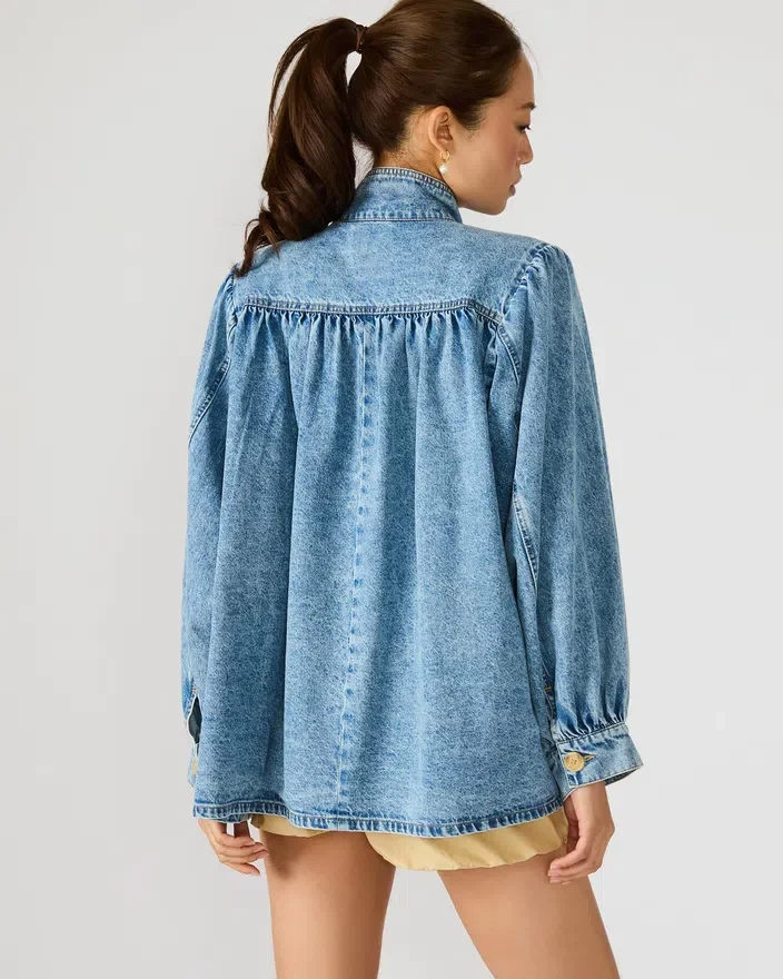 The Marceline Denim Jacket Forever Blue Offers a Timeless Silhouette with a Modern Fit. Crafted from Durable Denim, This Long-Sleeve Button-Up Jacket Features Classic Detailing That Enhances Its Versatile Style. Its Structured Design Provides Layering Options for Transitional Weather, Delivering Both Comfort and a Polished Look Ideal for Elevated Casual Wear.