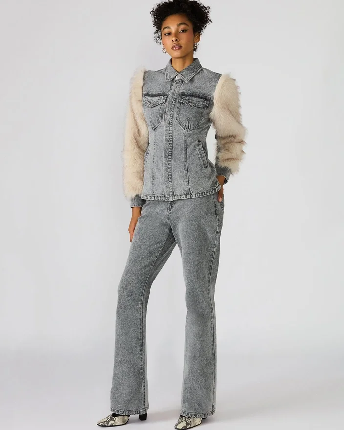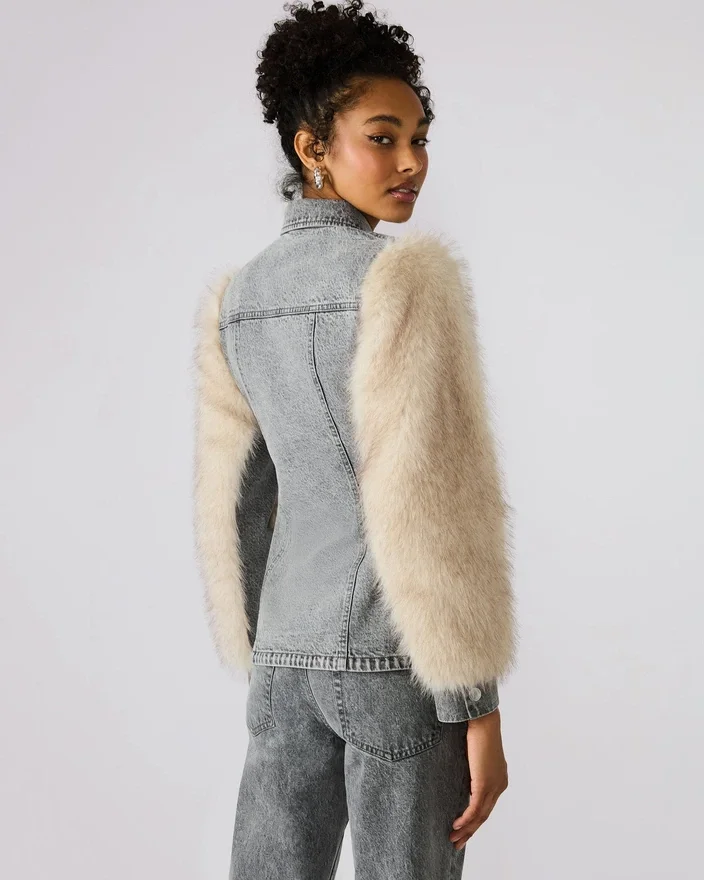 The Parker Jacket Fog Combines Rugged Denim with Luxurious Long-Sleeved Faux Fur Sleeves for a Sophisticated Twist on Classic Outerwear. This Button-Up Design Offers Warmth and Style, Making It a Versatile Choice for Cooler Days. Its Tailored Fit and Premium Materials Deliver Both Comfort and Polished Appeal, Perfect for Elevating Your Seasonal Wardrobe.
