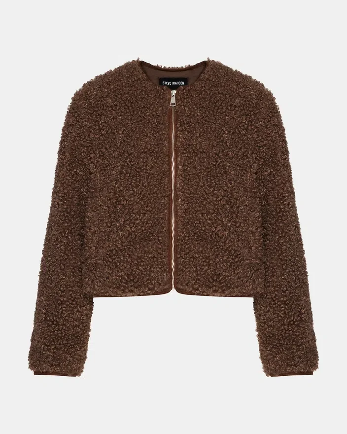 The Teddy is a Sherpa Jacket with a Front Zipper Closure and Collarless Design. Stay Warm and Fashionable During the Colder Months with This Stylish and Practical Jacket. Made with High-Quality Materials for Ultimate Comfort.