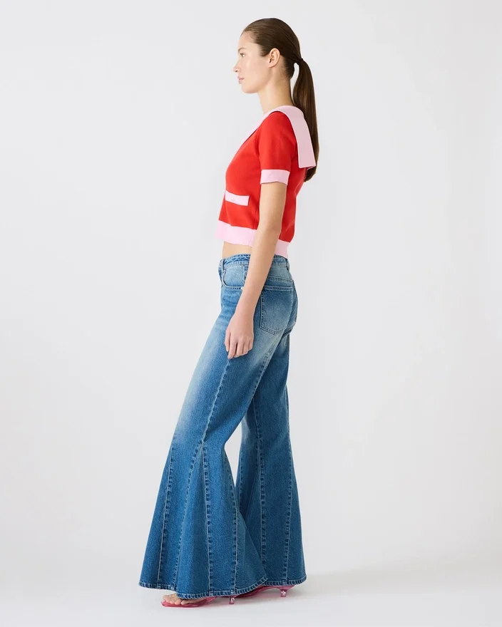 Elevate Your Wardrobe with This Aden Sweater Scooter Red Striking Two-Tone Sweater Featuring a Sophisticated V-Neckline and Short Sleeves. The Extended Collar Adds a Modern Edge, While Pearl-Embellished Buttons Provide an Elegant Finishing Touch. Perfect for Layering or Wearing Solo, This Top Effortlessly Transitions from Day to Night with Timeless Style and Refined Detail.