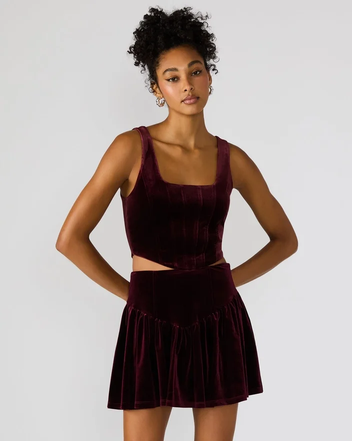 Elevate Your Wardrobe with the Aryanna Top Wine, a Sleeveless Velvet Cropped Top Designed for Both Style and Comfort. Featuring a Sleek Back Zipper Closure, It Offers a Secure Fit While Enhancing the Silhouette. Perfect as a Standout Piece or Paired with Its Matching Set, This Top Promises a Luxurious Texture and a Refined, Modern Look Ideal for Any Sophisticated Occasion.
