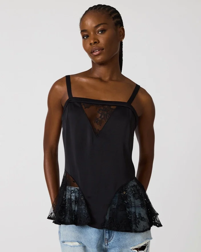 Elevate Your Everyday Style with the Leonorah Top Black. This Versatile Tank Features a Flattering Square Neckline and Adjustable Straps for a Customized Fit. Delicate Lace Panel Details Add a Touch of Sophistication and Texture, Making It Perfect for Layering or Wearing Solo. Whether You’re Dressing It up for an Evening out or Keeping It Casual, This Piece Transitions Effortlessly from Day to Night.
