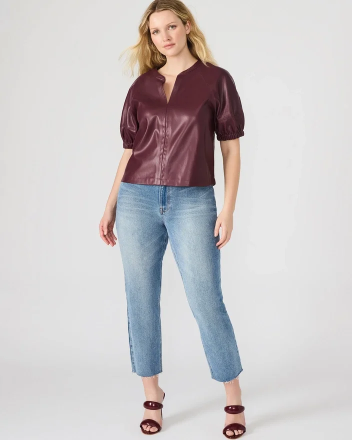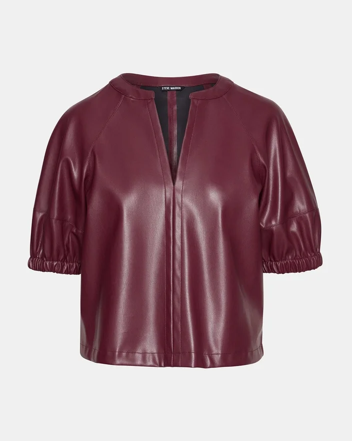 Elevate Your Wardrobe with the Roxanne Top, Featuring Short Puff Sleeves Crafted from Luxurious Faux Leather. This Expertly Designed Piece Combines Edgy Texture with a Flattering Silhouette, Perfect for Making a Sophisticated Statement in Any Setting.