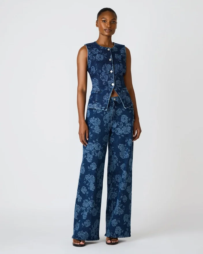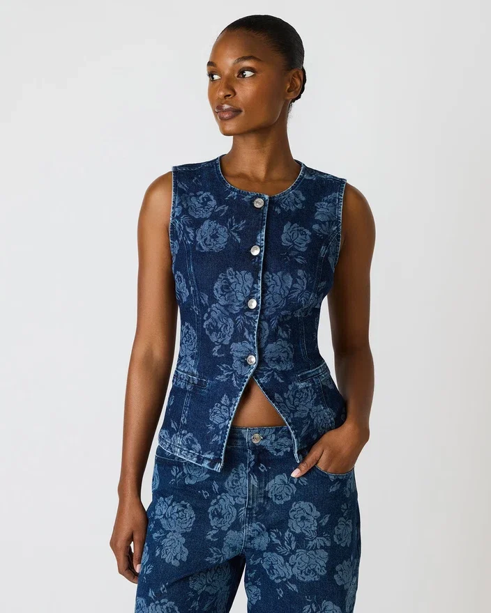 The Wesley Top Rose Frost Combines Timeless Denim Construction with an Unexpected Floral Print, Creating a Versatile Piece That Transitions Effortlessly from Casual to Dressed-Up Occasions. This Sleeveless Button-Up Features a Structured Silhouette That Flatters Multiple Body Types, While the Delicate Rose Pattern Adds Visual Interest Without Overwhelming Your Look. Perfect as a Standalone Statement Piece or Layered Under Jackets and Cardigans, It Pairs Seamlessly with the Matching Set for a Coordinated Aesthetic. The Durable Denim Fabric Ensures Longevity, Making This a Reliable Investment for Your Everyday Wardrobe.
