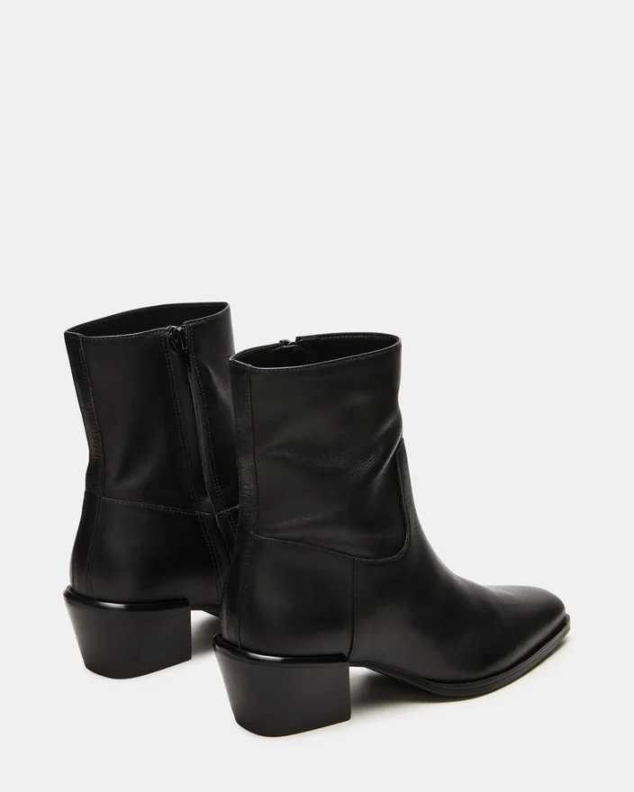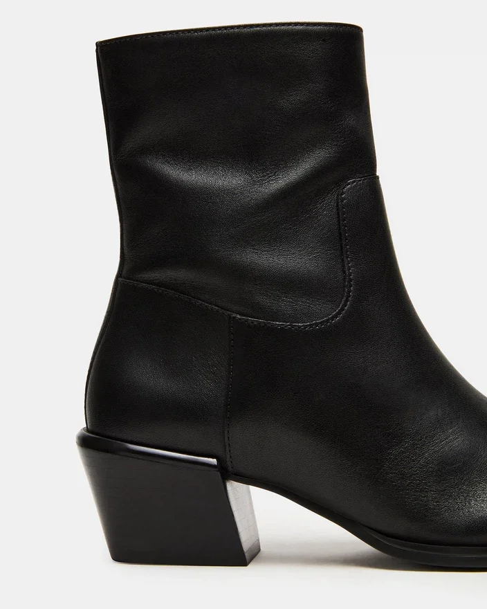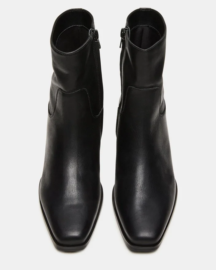 The Daney Black Leather Square-Toe Ankle Boot Combines Modern Design with Sophisticated Comfort. Crafted from Quality Materials, Its Structured Square Toe Offers a Contemporary Edge While Providing Ample Space for All-Day Wear. The Sleek Silhouette and Sturdy Design Make This Bootie a Versatile Choice, Seamlessly Elevating Both Casual and Dressier Outfits with Expert Style and Refined Functionality.