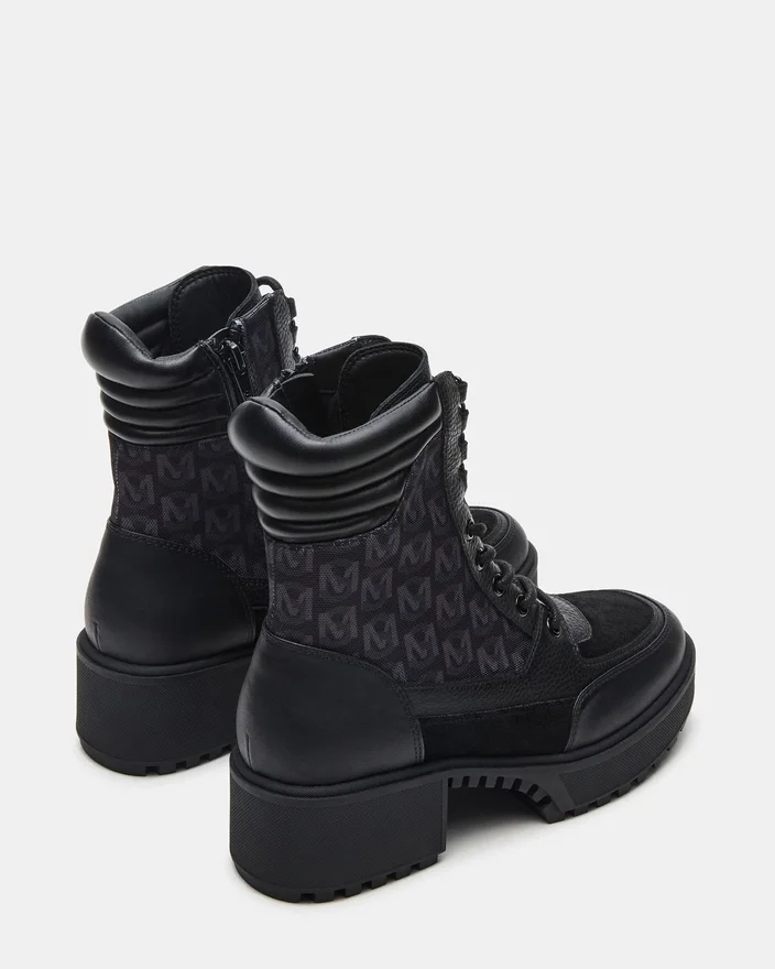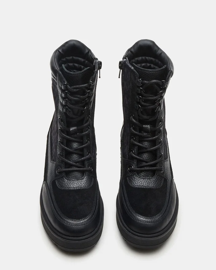 The Hiker Black Multi Lug Lace-Up Ankle Boot Combines Rugged Durability with Modern Style. Featuring a Sturdy Lug Sole for Enhanced Traction and a Secure Lace-Up Design, This Bootie Offers Reliable Support and Comfort for Urban Adventures or Outdoor Excursions. Its Versatile Finish Adds a Refined Touch to Any Outfit While Ensuring Lasting Wear. Ideal for Those Seeking Both Functionality and Fashion in a Compact Ankle Boot.