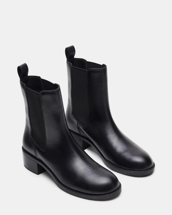 The Kaplan Black Leather Chelsea Ankle Bootie Combines Classic Design with Premium Craftsmanship. Featuring Elastic Side Panels, It Offers a Sleek Silhouette and Easy Slip-On Wear. Its Low Heel and Cushioned Insole Provide All-Day Comfort, Making It a Versatile Choice for Both Professional and Casual Settings. Durable Construction Ensures Lasting Wear, While the Timeless Style Complements a Variety of Outfits with Understated Sophistication.