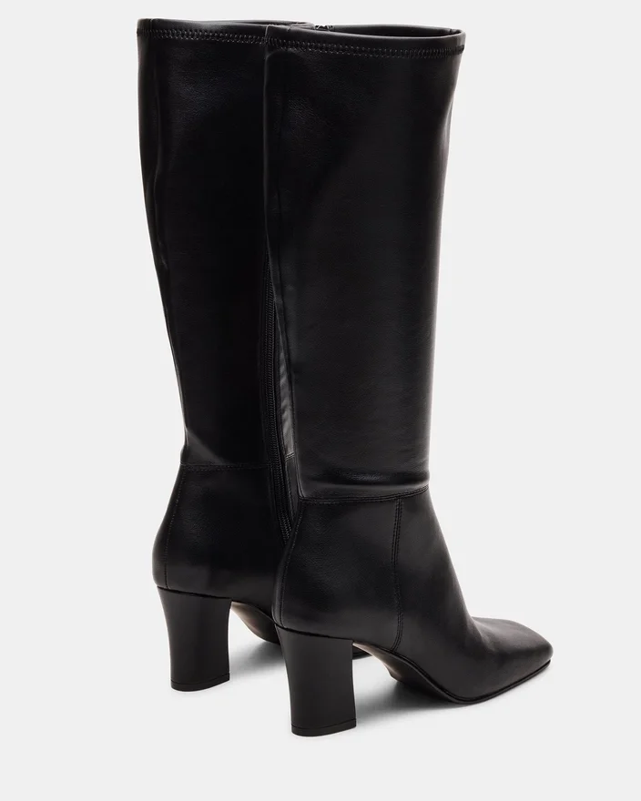 Elevate Your Footwear Collection with the Elliot Black, a Sleek Square-Toe Knee-High Boot Designed for Both Style and Stability. Featuring a Sturdy Block Heel, This Boot Offers Confident Support and a Modern Silhouette. Its Tall Shaft Provides Versatile Coverage That Pairs Effortlessly with Various Outfits, Making It a Sophisticated Choice for Any Occasion.