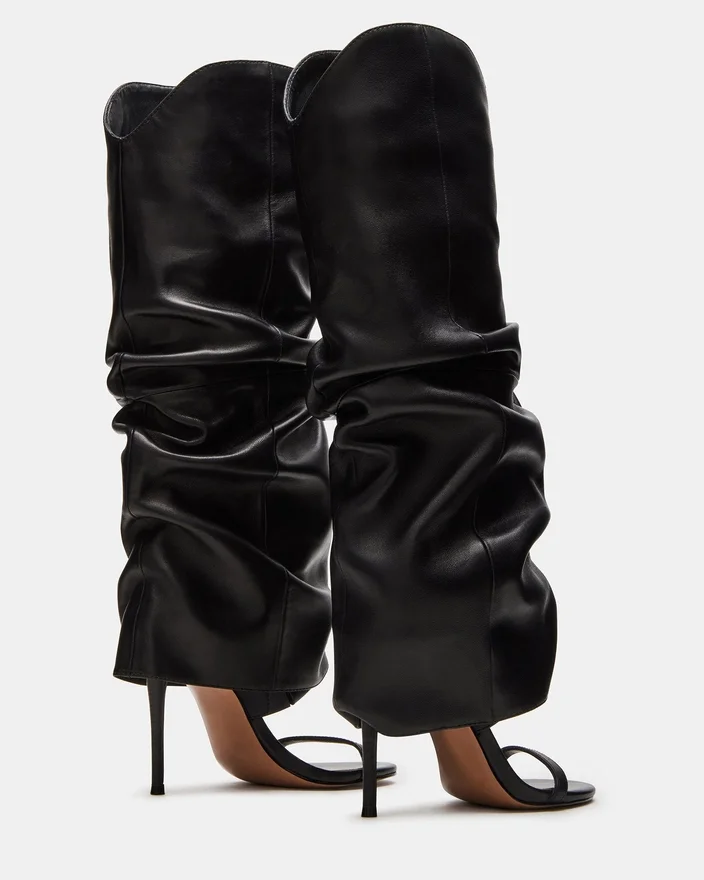 Expertly Crafted and Designed, the Ravine Cuffed Knee-High Boot Features an Open Toe and Stiletto Heel for a Stylish Touch. The Rounded Toe Provides Comfort While the Sleek Design Adds a Touch of Sophistication. Elevate Your Look with This Must-Have Boot.