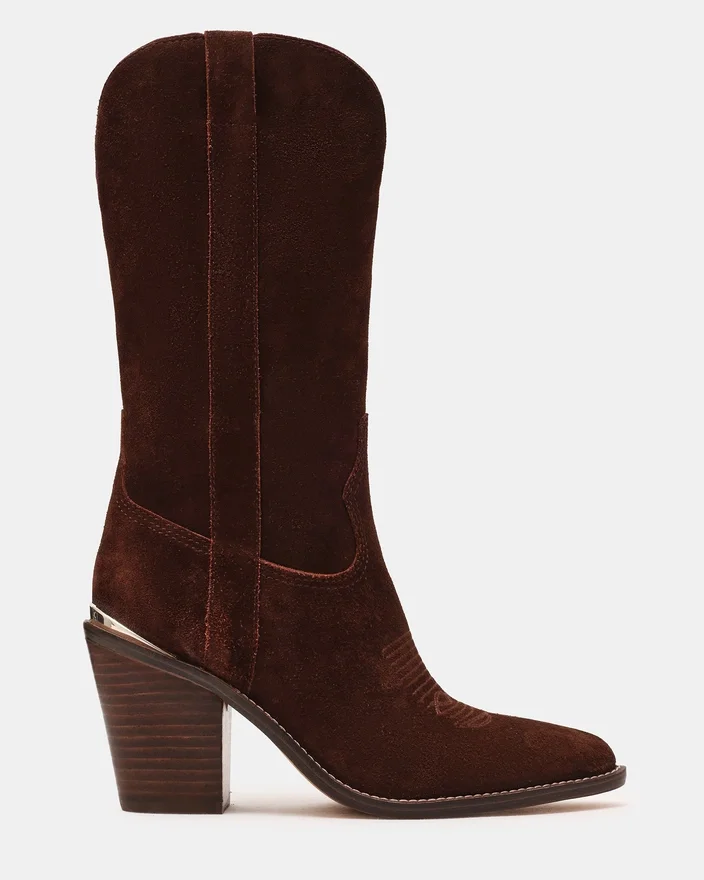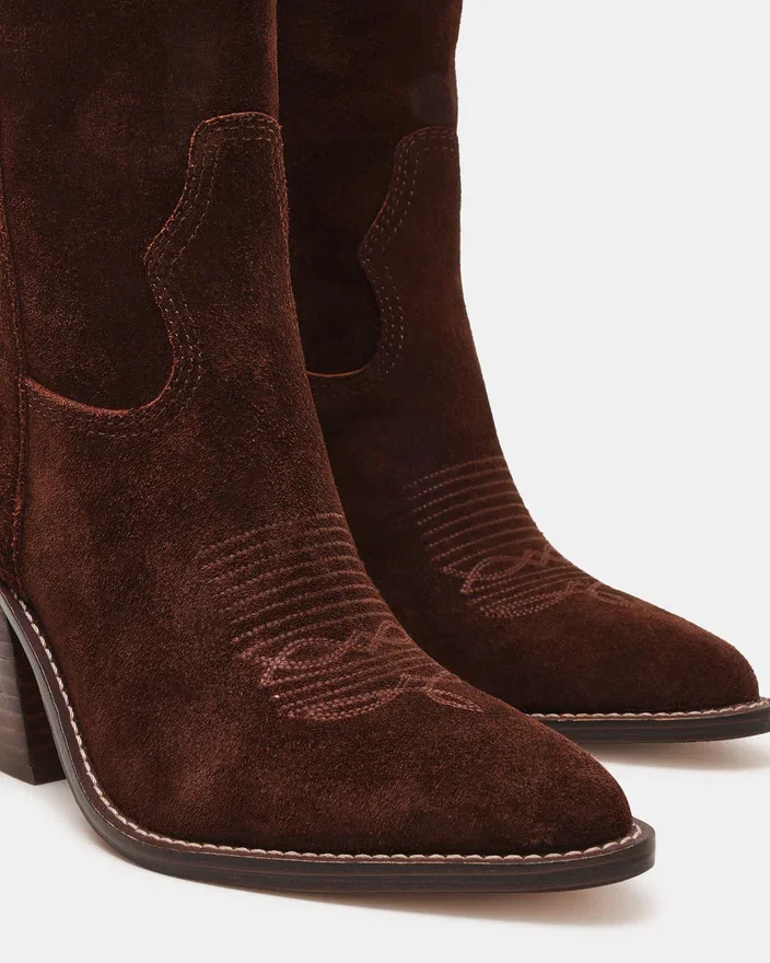 The Sally Brown Suede is a Pointed-Toe Western Boot Engineered for All-Day Comfort and Versatility. The Sturdy Block Heel Provides Stable Support Whether You’re Navigating City Streets or Embracing a Bold Fashion Statement. Crafted in Premium Materials, This Boot Delivers Classic Western Style with Refined Construction. Perfect for Elevating Casual Outfits or Grounding More Polished Looks with an Edge.