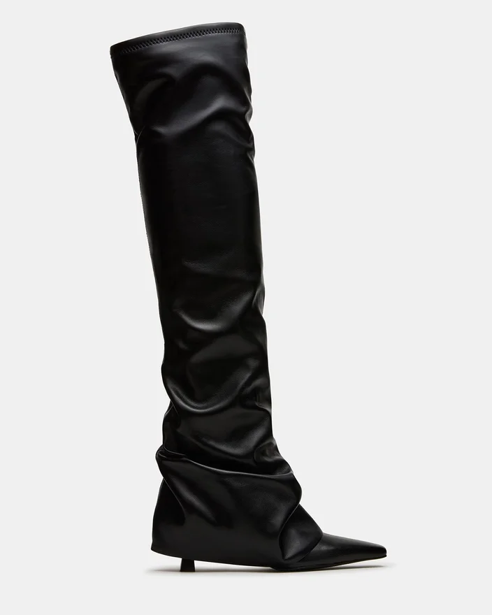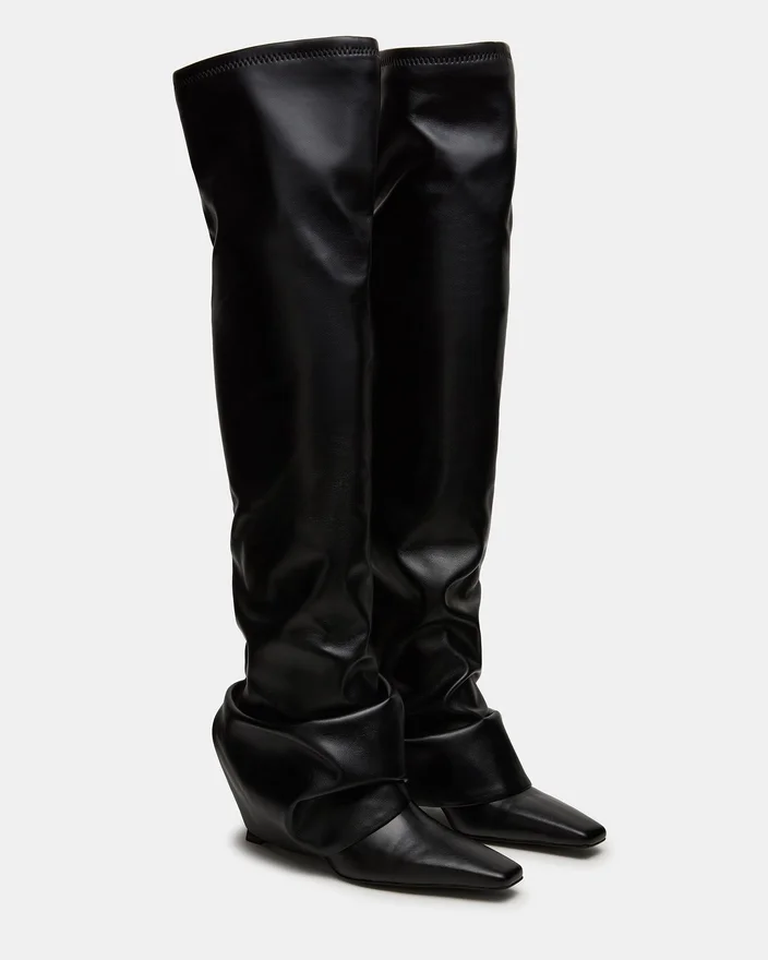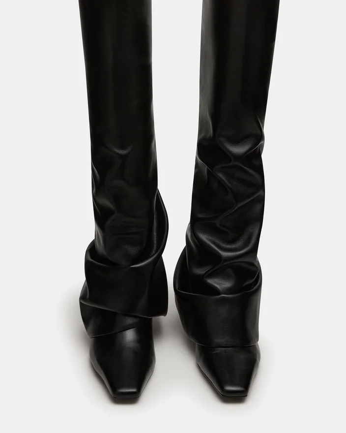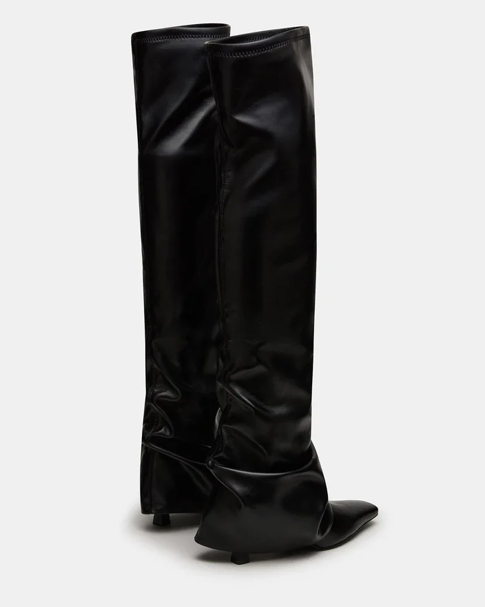 The Tatiana Black Knee-High Boot Features a Modern Square Toe and a Distinctive Fold-Over Design, Combining Contemporary Style with Timeless Sophistication. Crafted to Elevate Your Look, This Boot Offers Both Comfort and Edge, Making It Ideal for Polished, Confident Dressing Throughout the Season.