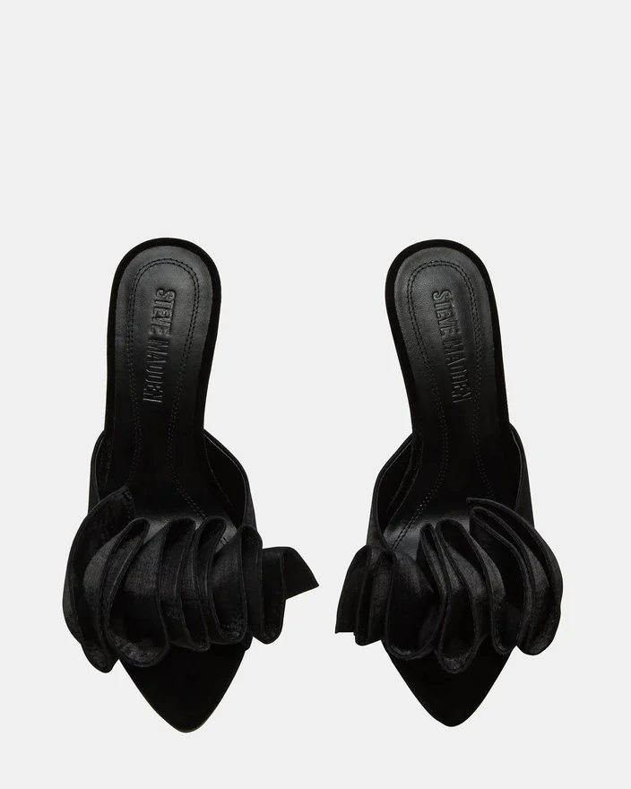 Elevate Your Style with These Affinity Heels. Featuring a Pointed-Toe Design and a Sleek Mule Silhouette, These Ruffle Heels Are Both Stylish and Timeless. The Stiletto Heel Adds a Touch of Sophistication, Making Them the Perfect Choice for Any Occasion. Step into These Heels and Experience Comfort, Confidence, and Elegance All in One.