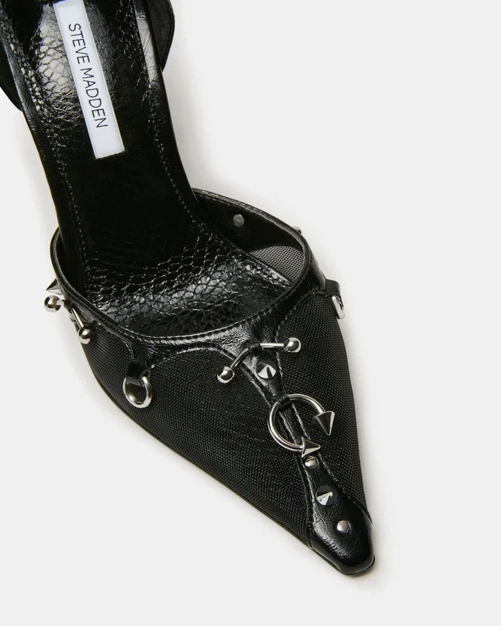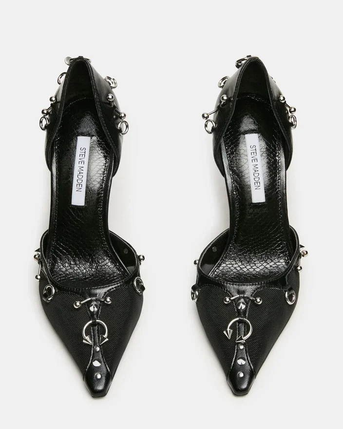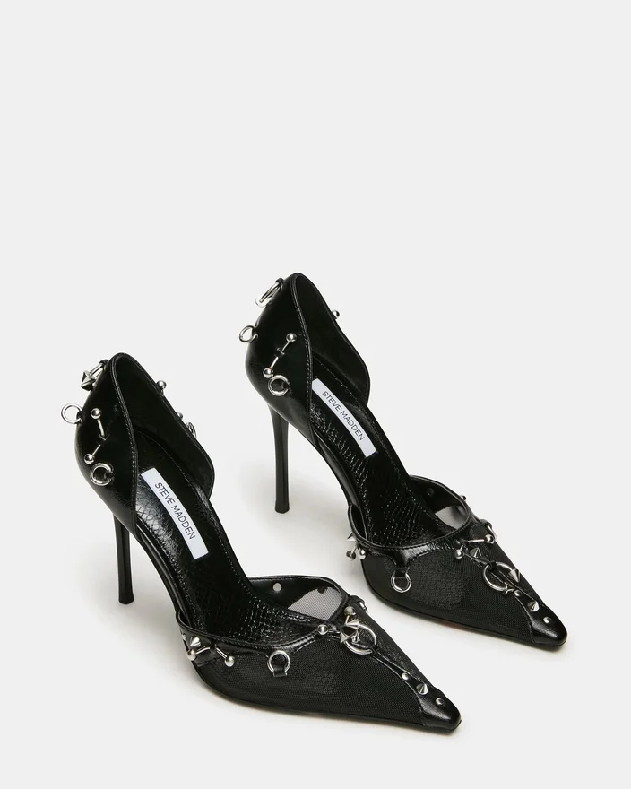 The Devour Black Mesh Features a Pointed Toe and Sleek Silhouette, This Heel Delivers Bold Sophistication for Any Occasion. The Elevated Stiletto Creates an Elongated Leg Line While the Refined Design Transitions Seamlessly from Office to Evening. A Timeless Pump That Commands Attention with Understated Elegance and Modern Edge.