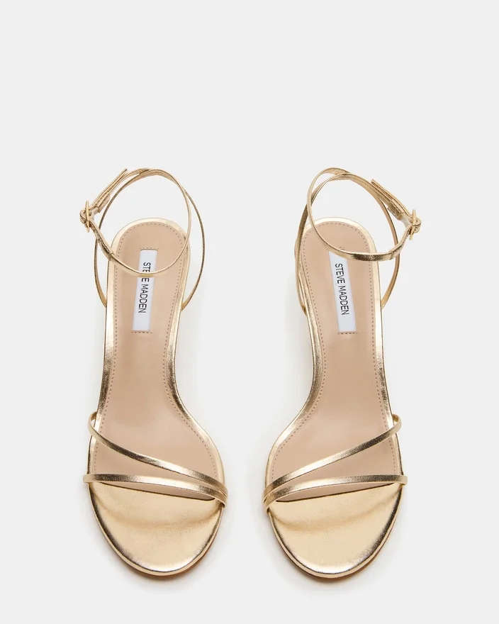 Expertly Crafted for Both Style and Comfort, the Eras Gold Leather Stiletto Heel Combines Elegant Design with a Secure Ankle Strap and a Classic Round-Toe Shape. This Must-Have Shoe Provides Stability and Sophistication, Making It the Perfect Addition to Any Outfit.