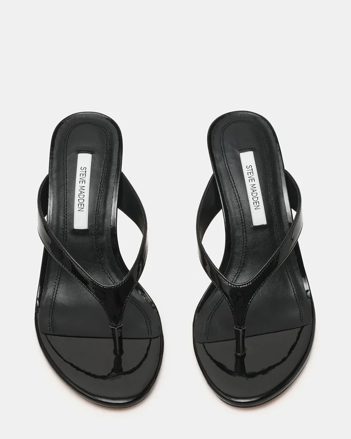 The Faroh Black Patent Delivers Refined Elegance with Its Rounded Toe Silhouette and Graceful Heel. This Versatile Style Transitions Seamlessly from Casual Daytime Wear to Evening Occasions, Offering a Sophisticated Alternative to Traditional Footwear. The Thong Construction Provides a Secure Yet Breathable Fit, While the Gently Rounded Toe and Lifted Heel Create a Flattering Leg Line. Perfect for Those Seeking Understated Luxury with Everyday Wearability.