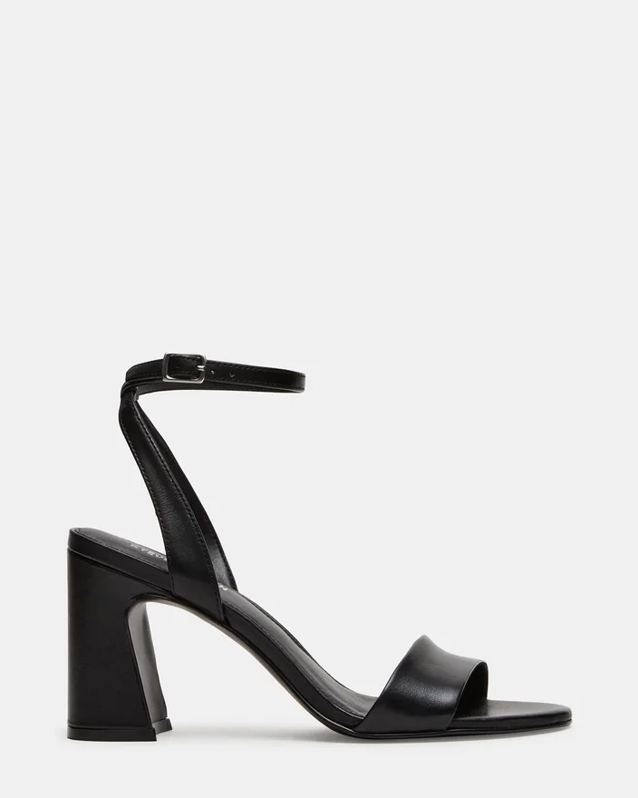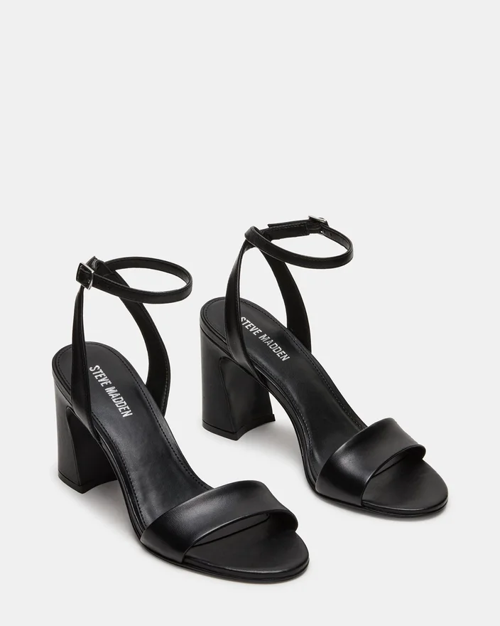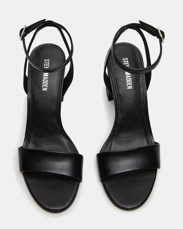 The Larah Black Leather Features a Rounded Toe and a Sturdy Block Heel, Offering Both Style and Stability for All-Day Wear. Its Secure Ankle Strap Ensures a Comfortable, Locked-In Fit That Enhances Confidence with Every Step. This Design Balances Elegance and Practicality, Making It a Versatile Choice for Various Occasions.