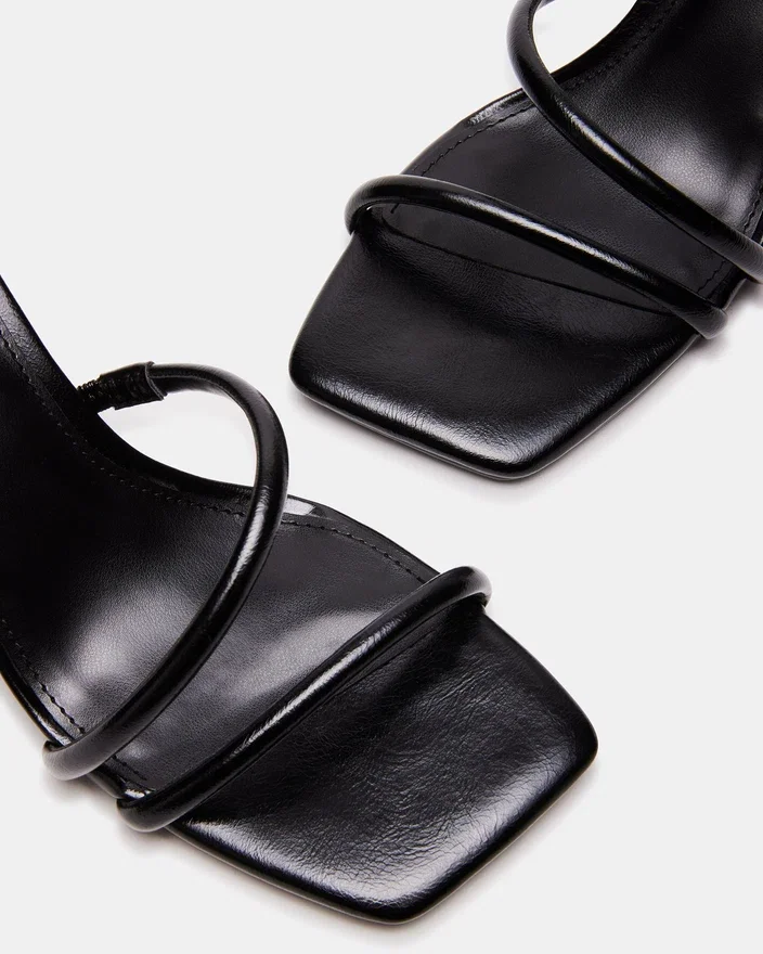 Dimensional Tubular Straps Crossed over the Foot and Coiled Around the Ankle Secure the Lopez Sandal to a Square Toe Sole with a Block Heel.