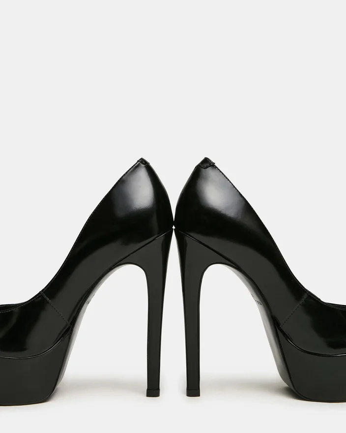 The Silene Black Leather Platform Heel Delivers Sophisticated Style with Architectural Precision. This Stiletto Pump Features an Elevated Platform Sole That Enhances Leg Line While Providing Stability and Comfort. The Streamlined Silhouette Pairs Effortlessly with Everything from Tailored Trousers to Evening Wear, Making It an Essential Addition to Any Discerning Wardrobe. A Timeless Choice for Those Who Appreciate Refined Footwear Craftsmanship.