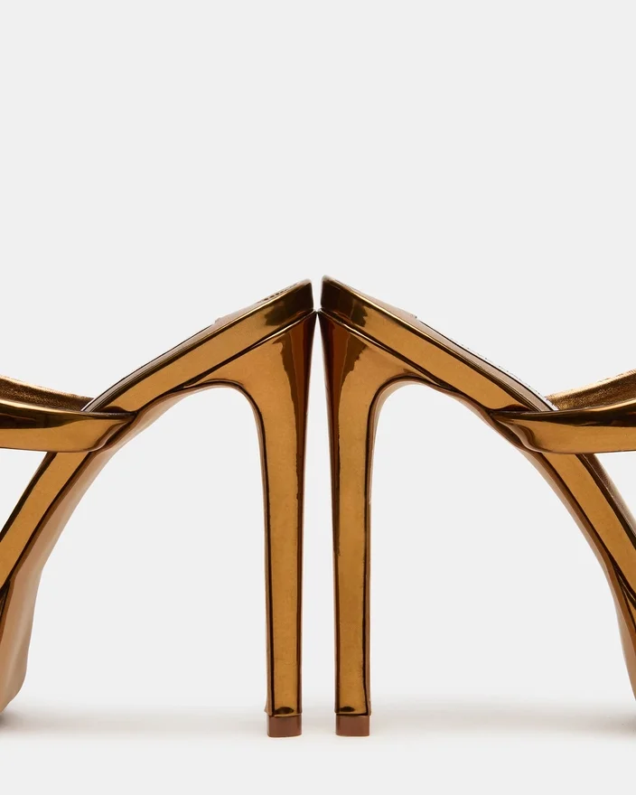 The Supernova Bronze Engineered for Modern Sophistication, This Mule Heel Showcases Dual Tubular Straps That Deliver Both Structural Integrity and Refined Visual Interest. The Minimalist Strap Configuration Creates a Clean Silhouette That Pairs Seamlessly with Diverse Wardrobes. A Versatile Essential That Bridges Casual and Formal Occasions with Understated Confidence and Architectural Precision.