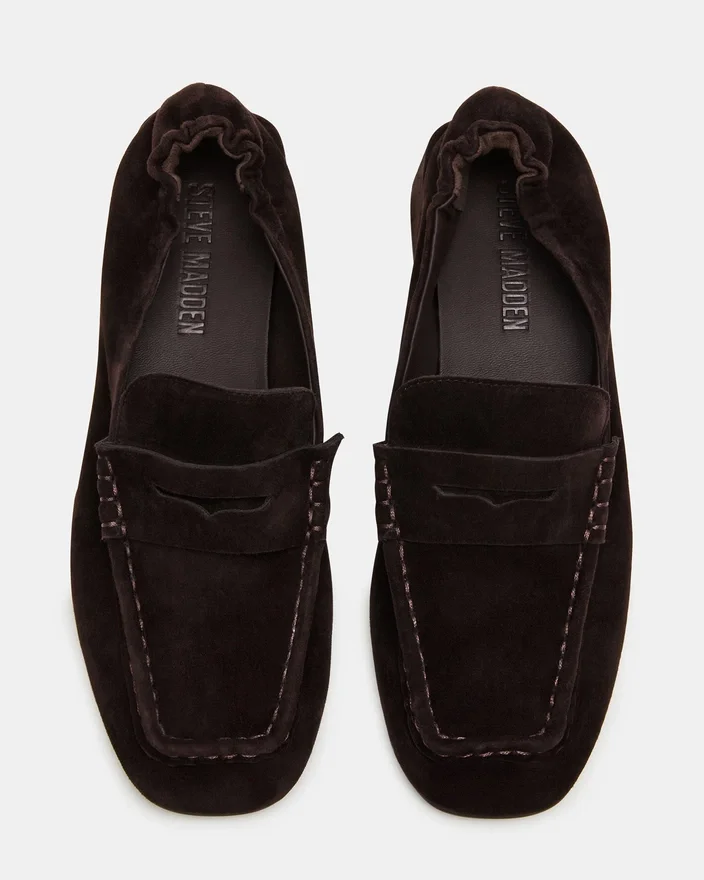 The Estee Brown Suede Loafer Features a Refined Heeled Square-Toe Design, Combining Contemporary Style with Expert Craftsmanship. Its Suede Finish Adds a Subtle Texture, While the Structured Heel Provides Both Elegance and Support. This Loafer is Ideal for Professionals Seeking a Sophisticated Yet Comfortable Shoe That Enhances Any Outfit with a Modern Edge.